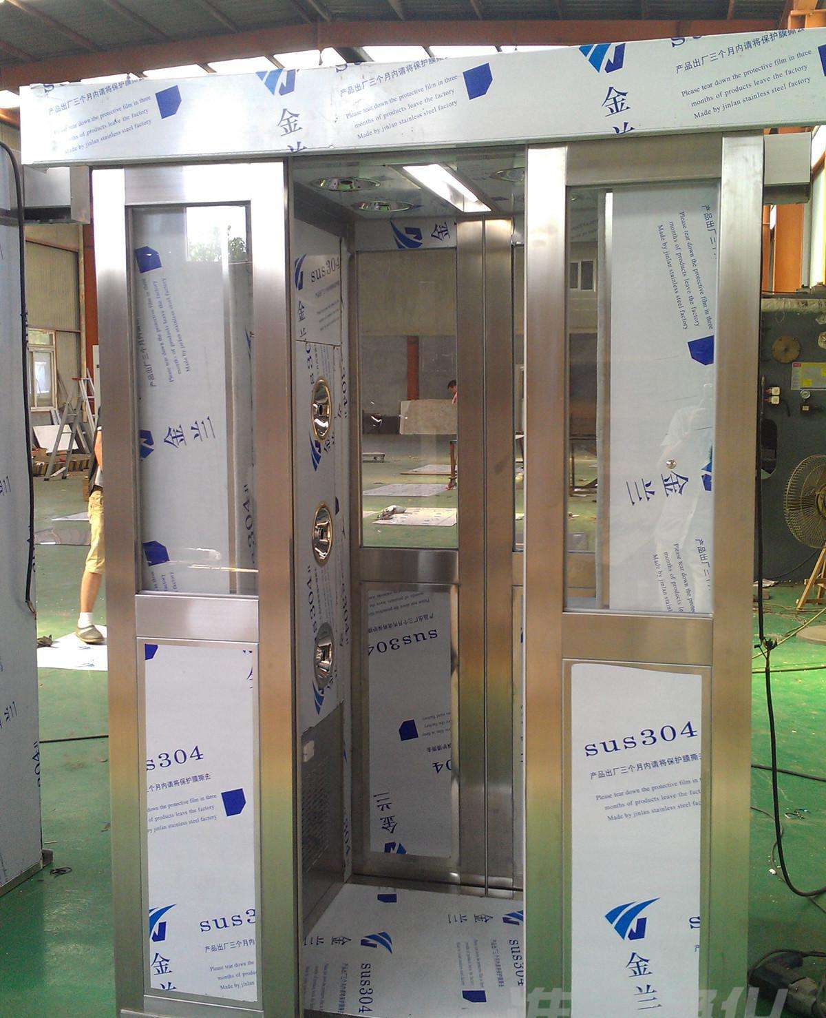 3、要從進門進才會吹,從出門出不會吹。如果進出門搞反了,請按照說明書上的方法調過來,也可以咨詢風淋室公司技術人員。