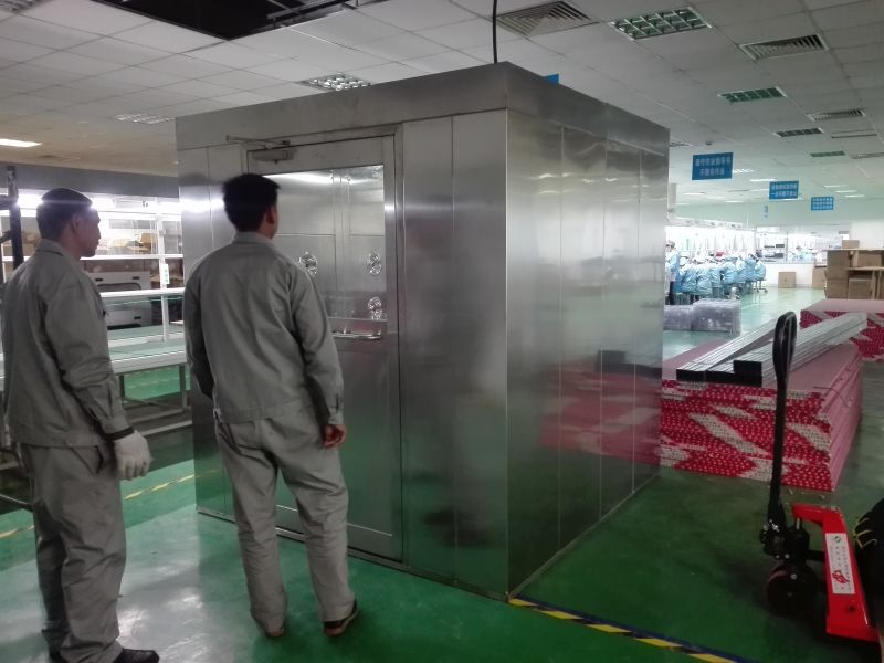 1、自動控制,單人單風淋系統采用PLC智能控制方式,控制面板上的LED閃屏能正確閃爍風淋的工作狀態、雙門的聯鎖狀態、風淋循環的發展及延時開門。配有光電傳感器,單向通道空氣淋浴房,可從非潔凈區進入。關門后,紅外傳感器可以感應到人,然后吹淋浴。吹完淋浴后,門鎖上了,只能從門口走出空氣淋浴間。